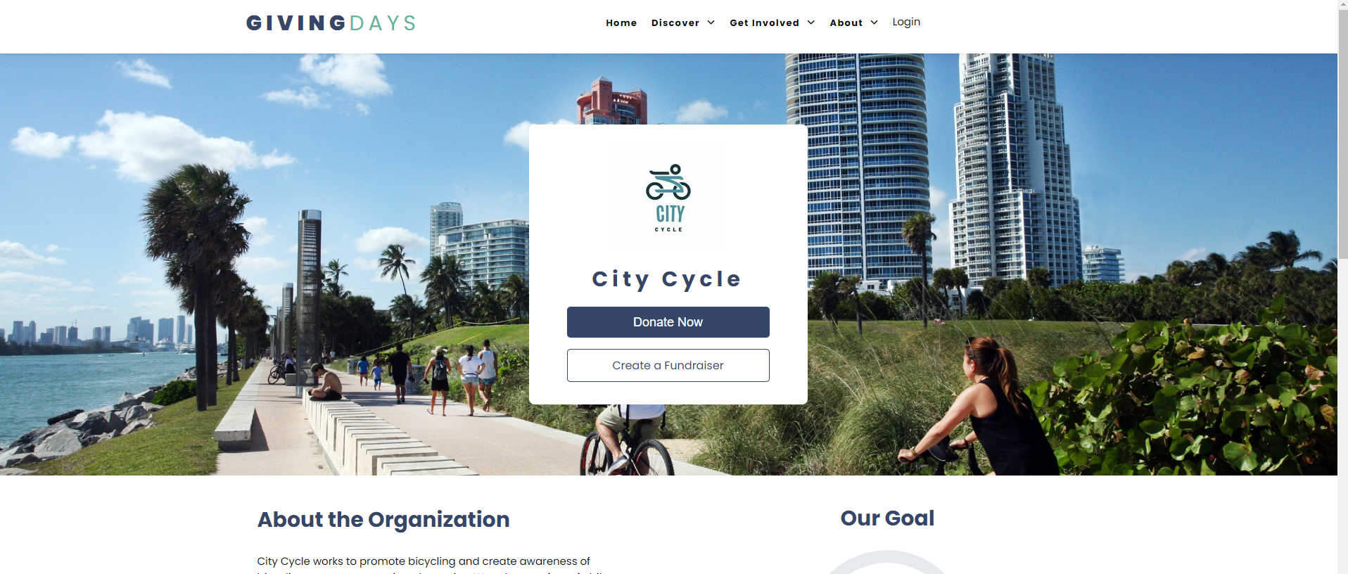 Find your favorite nonprofit using the website's search function. From the nonprofit's page, click the "Create a Fundraiser" button.